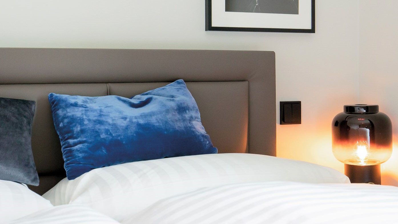 Vom Wohnbereich aus erreichen Sie zwei Schlafzimmer: Davon eines mit einem breiten Bett (180 x 210cm) und einem Fensterblick, der das Urlaubsgefühl unterstreicht. Direkt nebenan befindet sich das komfortable Bad, mit allem, was Sie während Ihres Aufenthalts brauchen können: Von der bodengleichen Dusche bis zur Waschmaschine ist alles vorhanden.